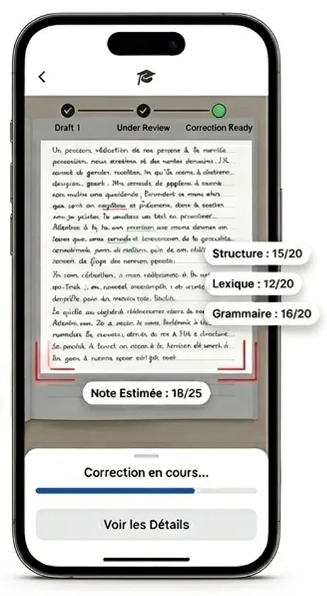 Obtenez une correction détaillée instantanée selon la grille officielle.